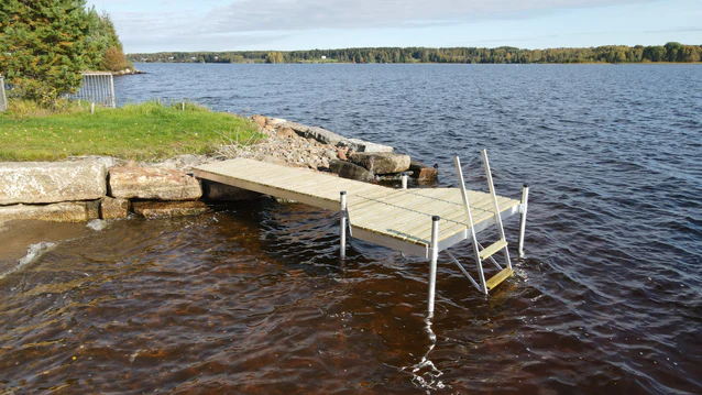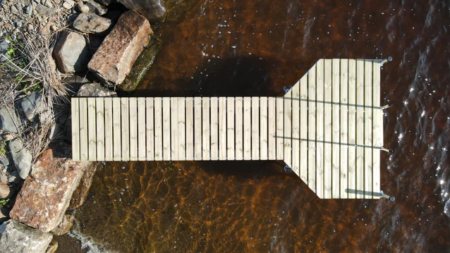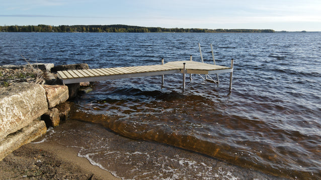 Pylväslaituri Pikku-Roni on perinteinen T-mallinen laituri, joka soveltuu erinomaisesti tukevaksi ja turvalliseksi uintilaituriksi. Kompaktin kokonsa ansiosta se on suosittu valinta mökkirantaan, jossa halutaan toimiva mutta helposti käsiteltävä laituri.