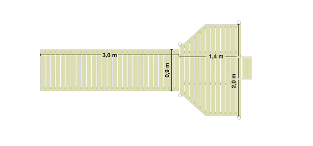 • Käyntiosuus: leveys 90 cm, pituus 300 cm